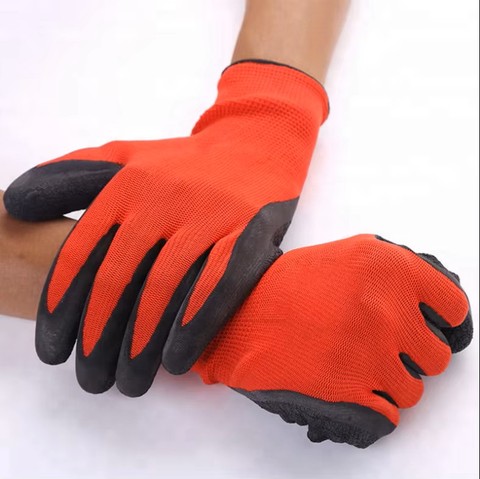 13g Polyester Liner Coated Safty Latex Work Ruber Gloves Crinkle Finished